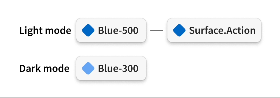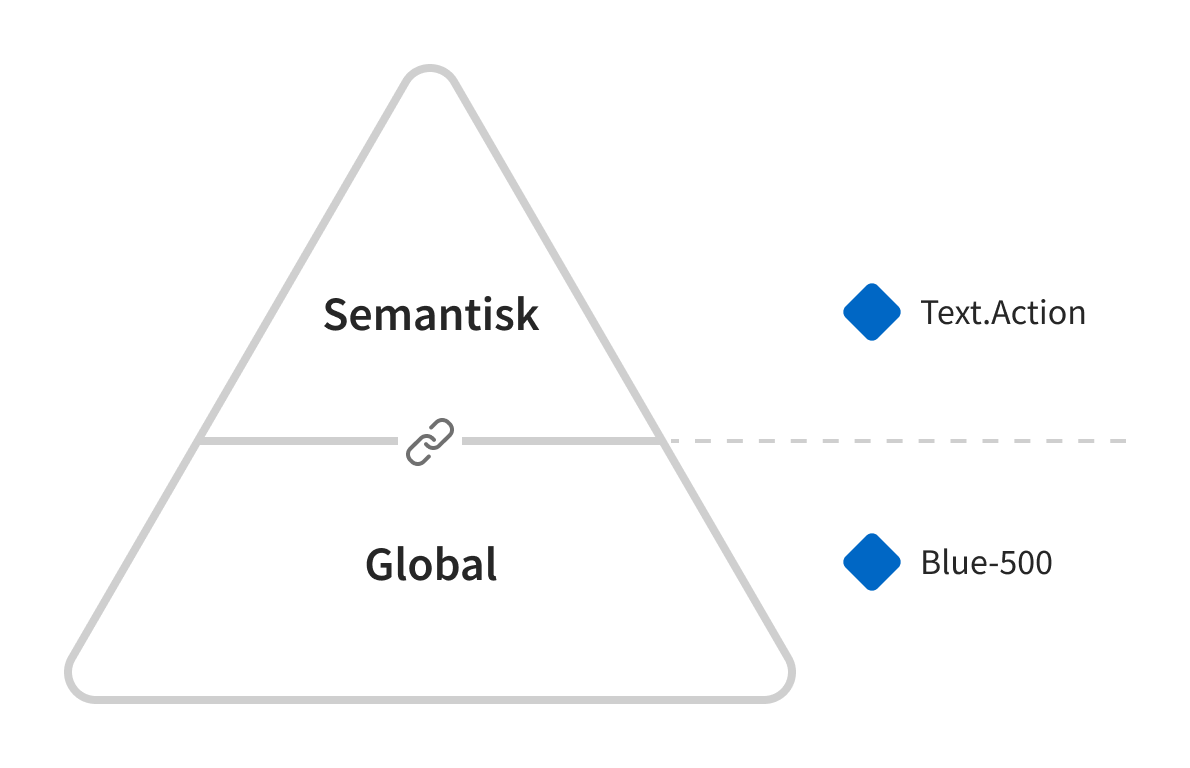 «Semantisk» betyr bare at farger navngis etter bruk og funksjon. I Aksel definerer vi hvilke mulige funksjoner som finnes, og hvilke farger de skal ha, hver for seg. Vi har for eksempel Border.Action og Surface.Neutral, hvor navnene ikke sier noe om blå eller grå, men heller hvordan fargene skal brukes.