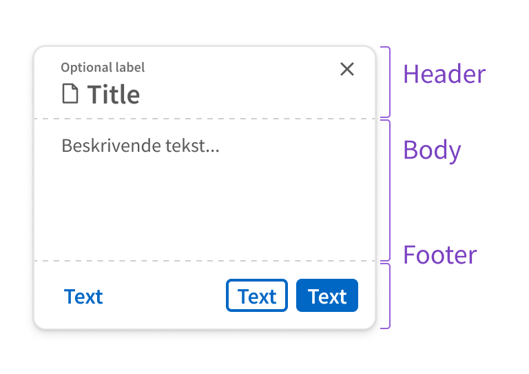 Modal er bygd opp i 3 deler: header, body og footer.